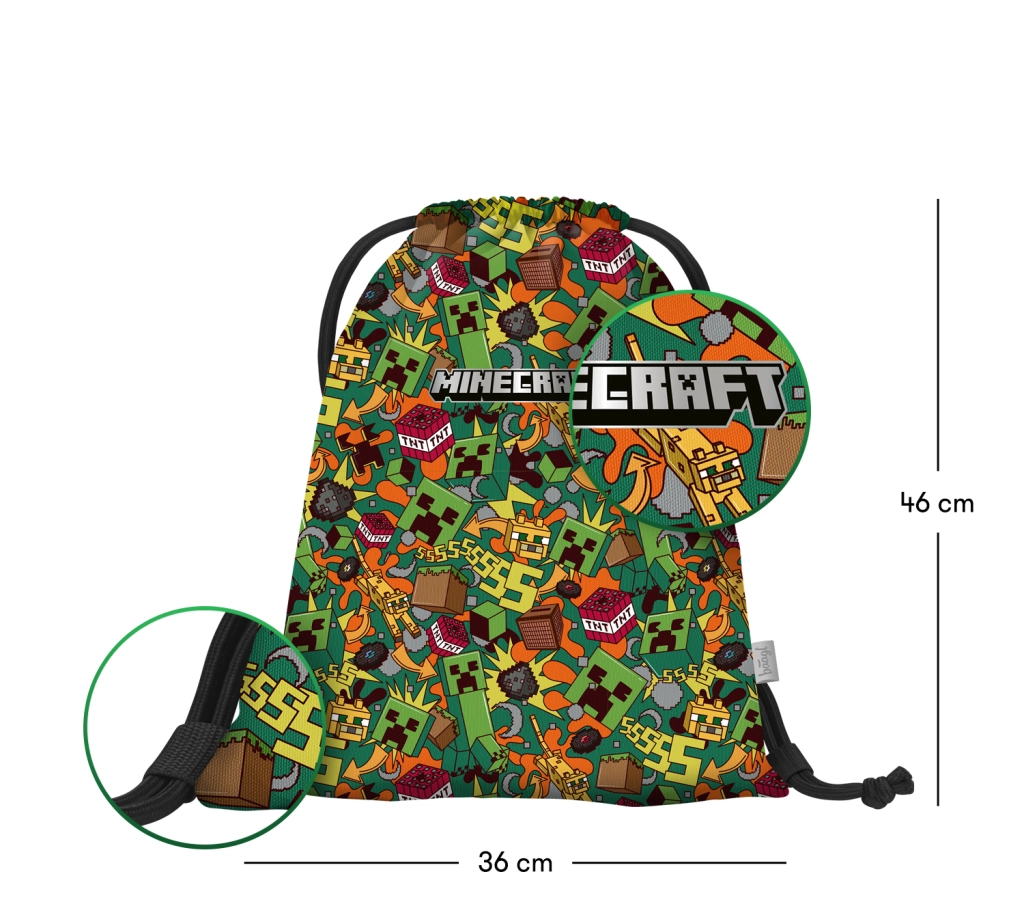 Vrećica za obuću BAAGL MINECRAFT Chaos odličan je izbor za školu, aktivnosti i slobodno vrijeme. Izdržljiv i lako održiv materijal osigurava dug vijek trajanja, dok će upečatljiv gamerski motiv razveseliti sve ljubitelje svijeta Minecrafta.