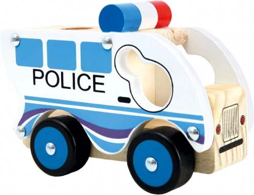 Ovo drveno policijsko autić u bijelo-plavoj izvedbi idealno je prvo vozilo za djecu od 1 godine. Zahvaljujući čvrstoj izradi od debele šperploče i masiva izdržat će svakodnevnu igru, dok okretni kotači omogućuju glatku vožnju po tepihu i podu.
