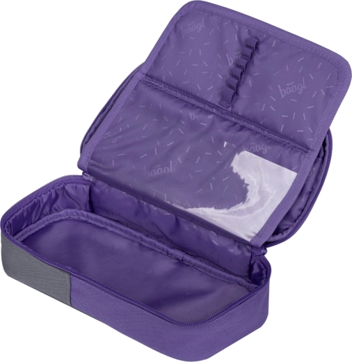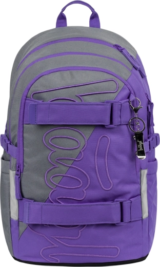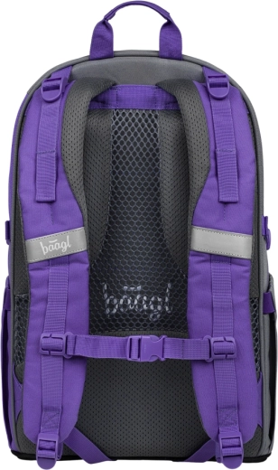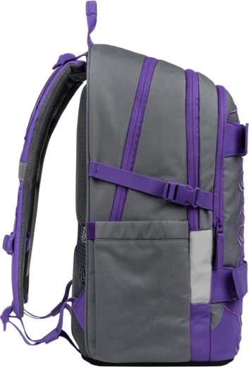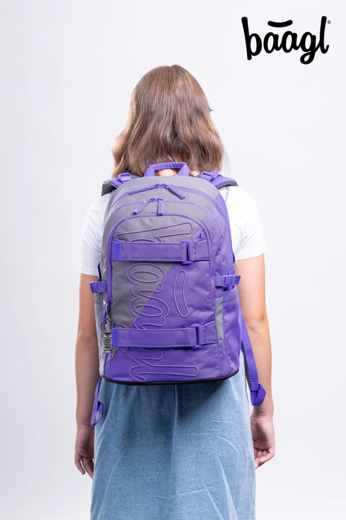 Kompletna školska oprema u ujednačenom dizajnu DUAL: ergonomski ruksak s tri komore i organizatorom, sklopiva sportska torba za treninge ili vikend izlete, torbica za struk za sigurno nošenje sitnica i dvostruka pernica s preglednim rasporedom. Cijeli set usklađen je u modernim ljubičasto‑sivim tonovima i izrađen od recikliranih, vodoodbojnih materijala s naglaskom na dug vijek trajanja.