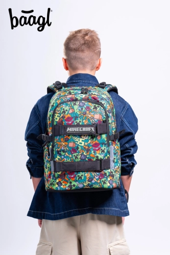 Zahvaljujući anatomski oblikovanim leđima, podesivim naramenicama i reflektirajućim elementima set je siguran i udoban za nošenje. Svi dijelovi su od vodoodbojnog recikliranog materijala i koriste pouzdane YKK patentne zatvarače za dug vijek trajanja. Dizajn ujednačen motivima MINECRAFT-a lako ćete uskladiti u jedan stil.