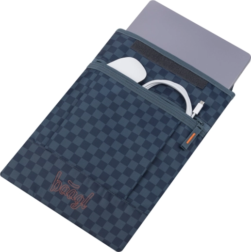 Stilna i izdržljiva navlaka za prijenosno računalo do 15" marke BAAGL štiti uređaj zahvaljujući vodootpornom materijalu i mekanoj podstavi. Prednji džep s kvalitetnim YKK patentnim zatvaračem prima dodatnu opremu. Izrađeno od 100% recikliranog materijala s GRS certifikatom.