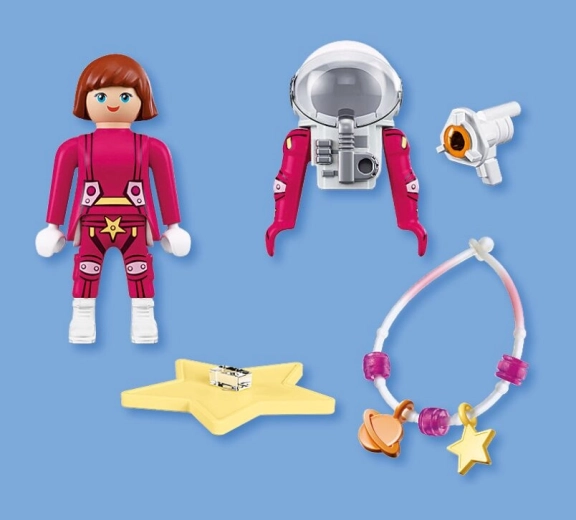 Uz ovaj set djeca se pretvaraju u hrabru astronautkinju i kreću u istraživanje beskrajnog svemira. Sjajni detalji, razrađena oprema i narukvica koja svijetli u mraku donose dozu svemirske magije i izvan svijeta igre.