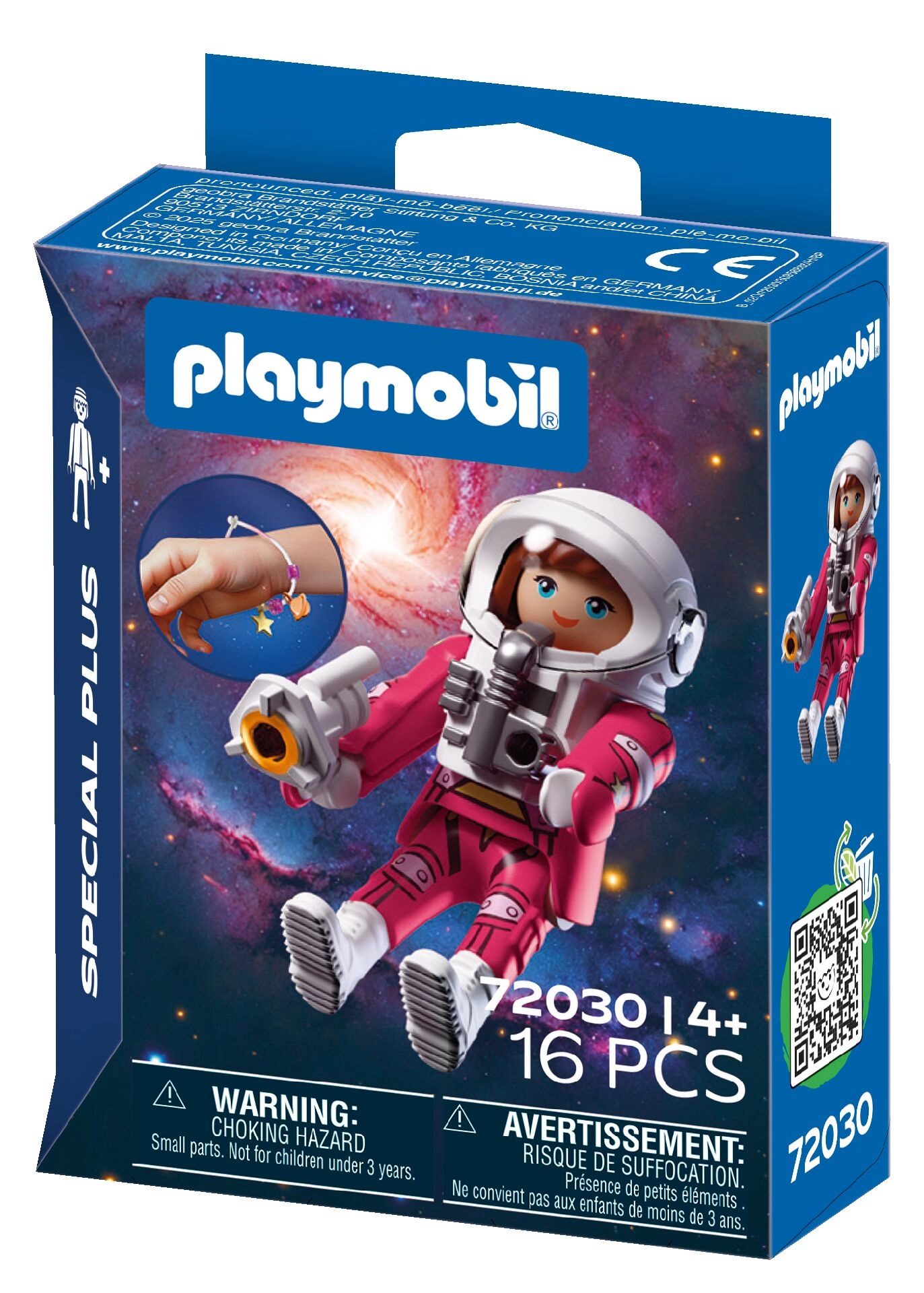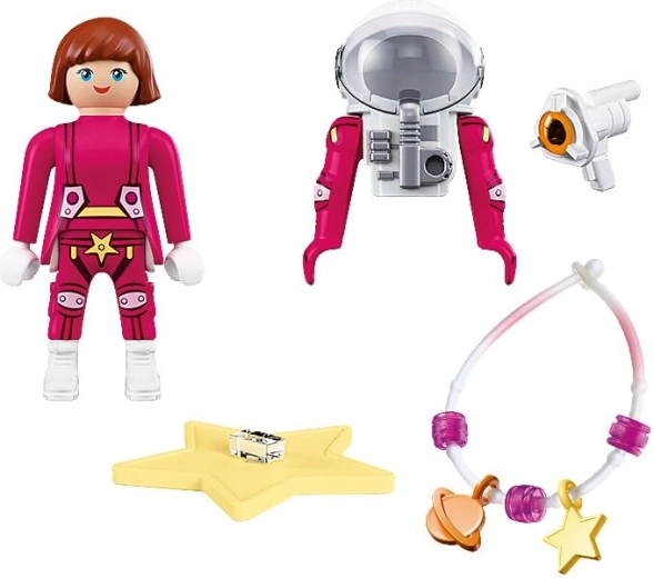Otkrij svemir s kreativnim setom PLAYMOBIL Special Plus: figurica astronautkinje, svjetleća silikonska narukvica s perlicama i bogati dodaci za igru uloga. Odlično za razvoj mašte, kompatibilno s drugim setovima PLAYMOBIL.