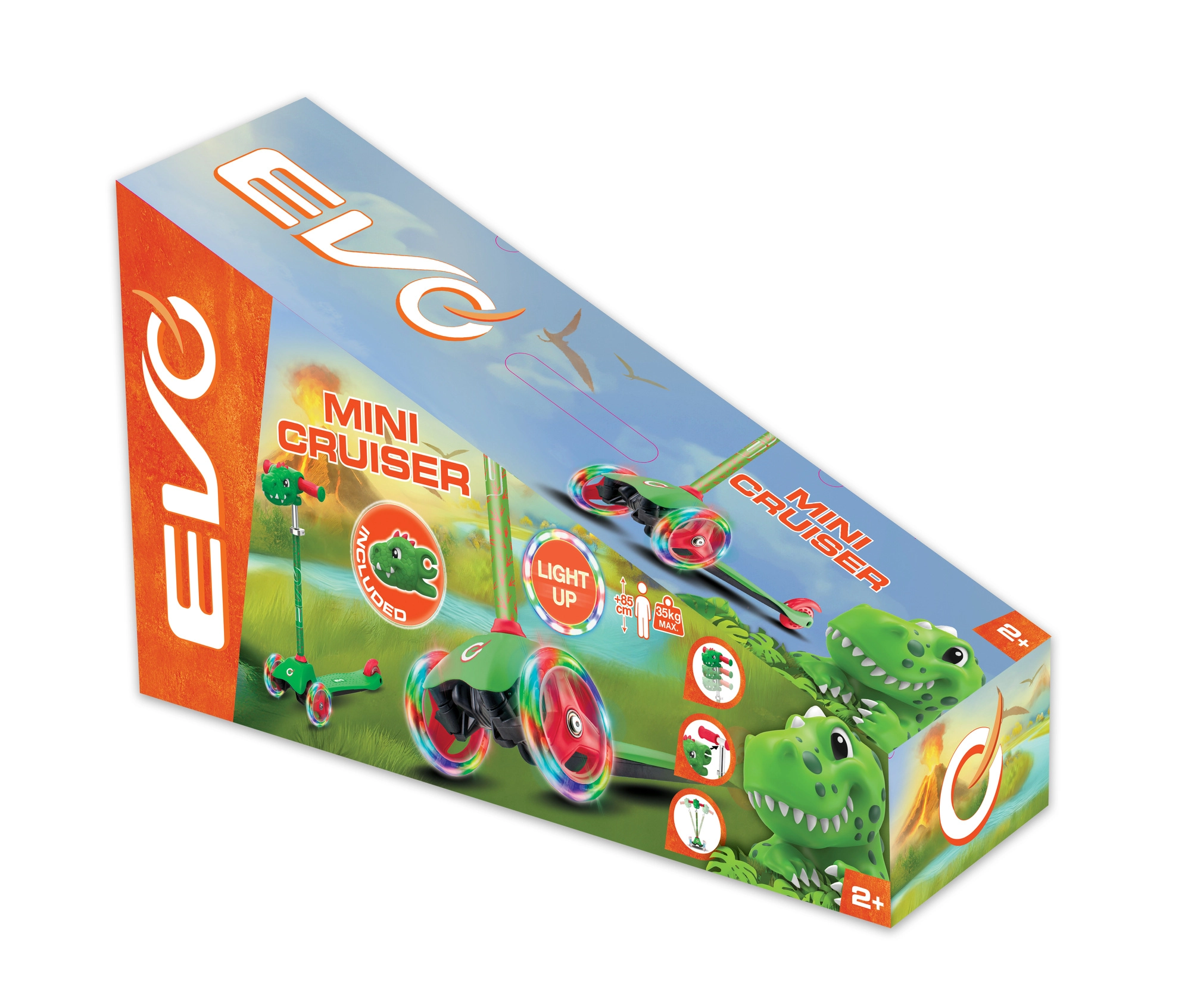 Romobil EVO Light Up Mini Cruiser odličan je izbor za prve vožnje na odgurivaču/romobilu. Zahvaljujući stabilnoj trokotačnoj konstrukciji i balansnom upravljanju naginjanjem djeca prirodno vježbaju ravnotežu i koordinaciju. Široka platforma za stajanje i udobne TPR ručke osiguravaju siguran hvat i komfor u vožnji.