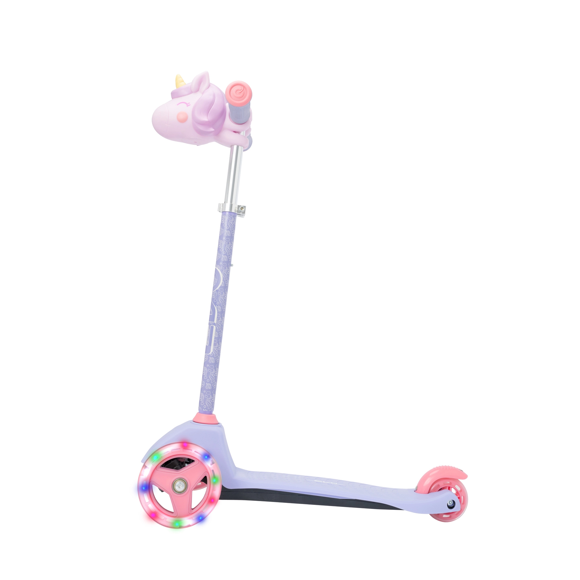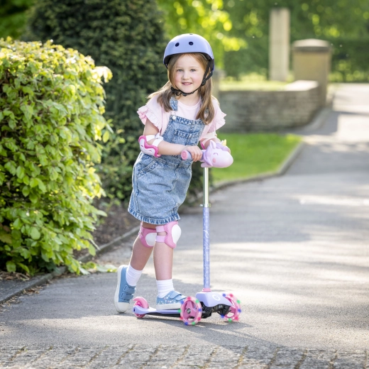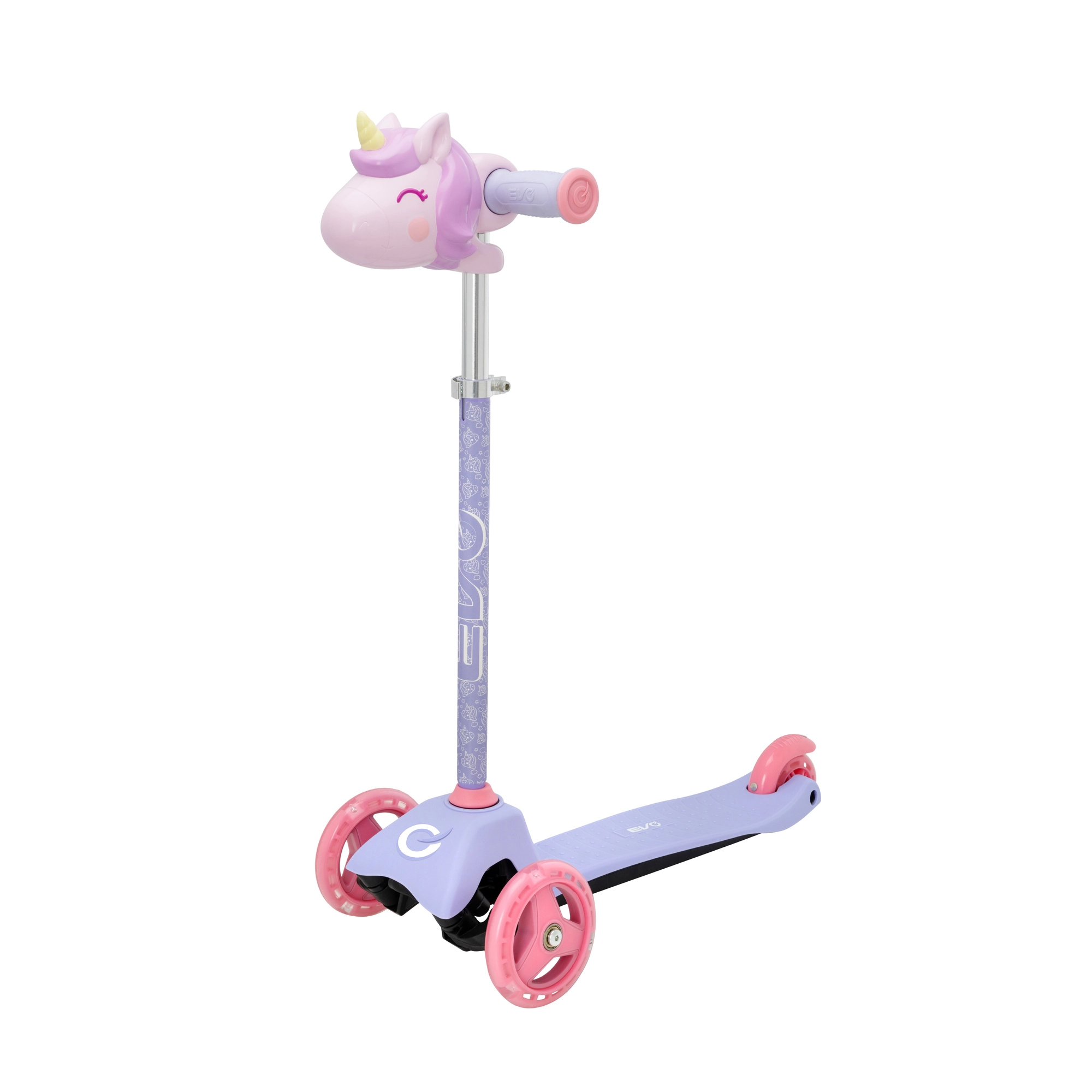 Dječji troskating romobil EVO Light Up Mini Cruiser s motivom jednoroga razveselit će male vozače već od 2 godine. Nudi stabilna tri kotača, široku nisku podnicu, podesiva upravljača i svjetleće prednje kotače za još zabavniju vožnju. Zahvaljujući balansiranom upravljanju naginjanjem razvija ravnotežu i koordinaciju, dok stražnja nožna kočnica osigurava sigurno zaustavljanje.