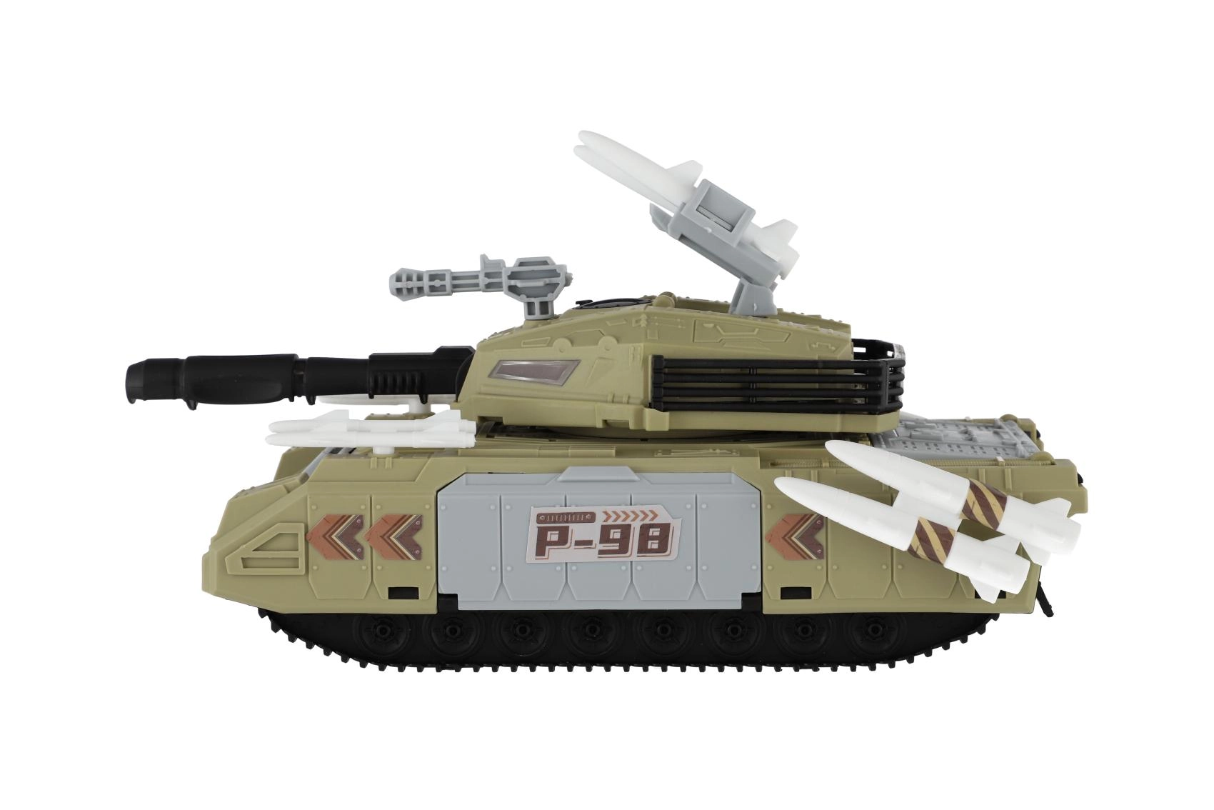 Akcijska igračka za male ljubitelje vojske: plastični tenk s detaljnom izradom, slobodnim hodom i bogatom opremom. Otvarajući dijelovi te priložena vozila, helikopter i figurice vojnika potiču kreativnu i tematsku igru punu misija i avantura.