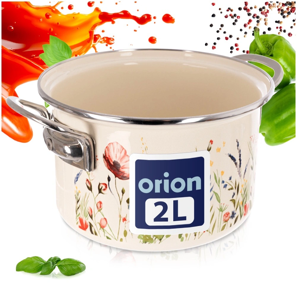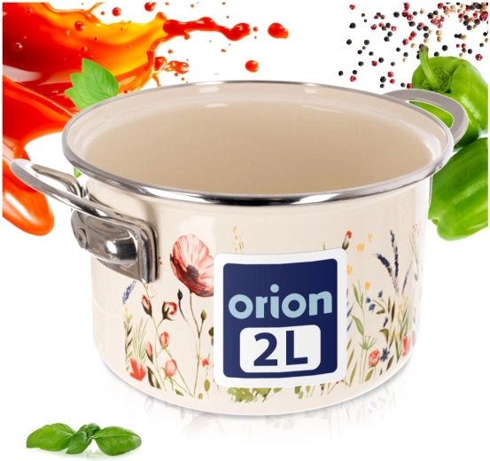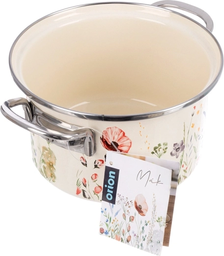 Elegantni krem emajlirani lonac zapremine 2 l i promjera 18 cm idealan je za kuhanje i pirjanje. Izdržljiva površina od emajliranog čelika s cvjetnim dekorom, nehrđajući rub i ručke za udobno prenošenje. Pogodan za sve vrste štednjaka uključujući indukciju, za pećnicu i perilicu posuđa. Zdravstveno ispravan materijal, pogodan i za alergičare.