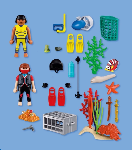 Ovaj set nudi akcijsku potjeru u dubinama mora: budni policijski ronioc prati lopova koji pokušava skriti škrinju s blagom među algama i koraljima. Zahvaljujući podvodnom skuteru, opremi i realističnim dodacima, djecu očekuje mnoštvo uzbudljivih misija i slobodnog istraživanja podmorskog svijeta.