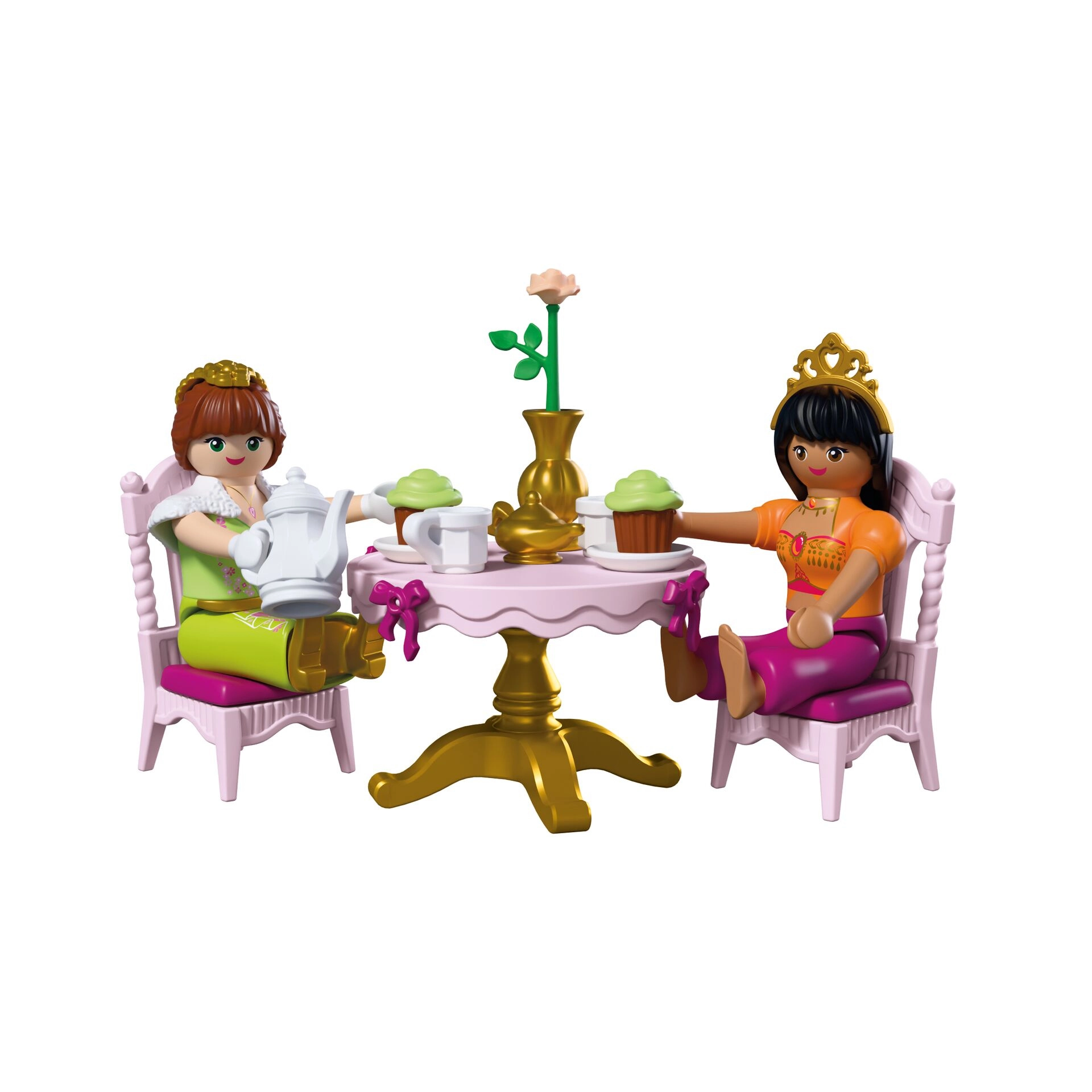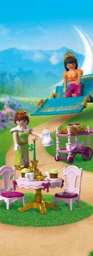 Uronite u svijet bajki s PLAYMOBIL setom, gdje princeza dočekuje svoju prijateljicu na stilski čaj u vrtu. Leteći tepih osigurava efektan dolazak, dok okrugli stol, stolčići i poslužavni vagon pružaju savršenu pozadinu za goste. Detaljni dodaci i pomične figurice nadahnjuju djecu da osmišljavaju vlastite priče.