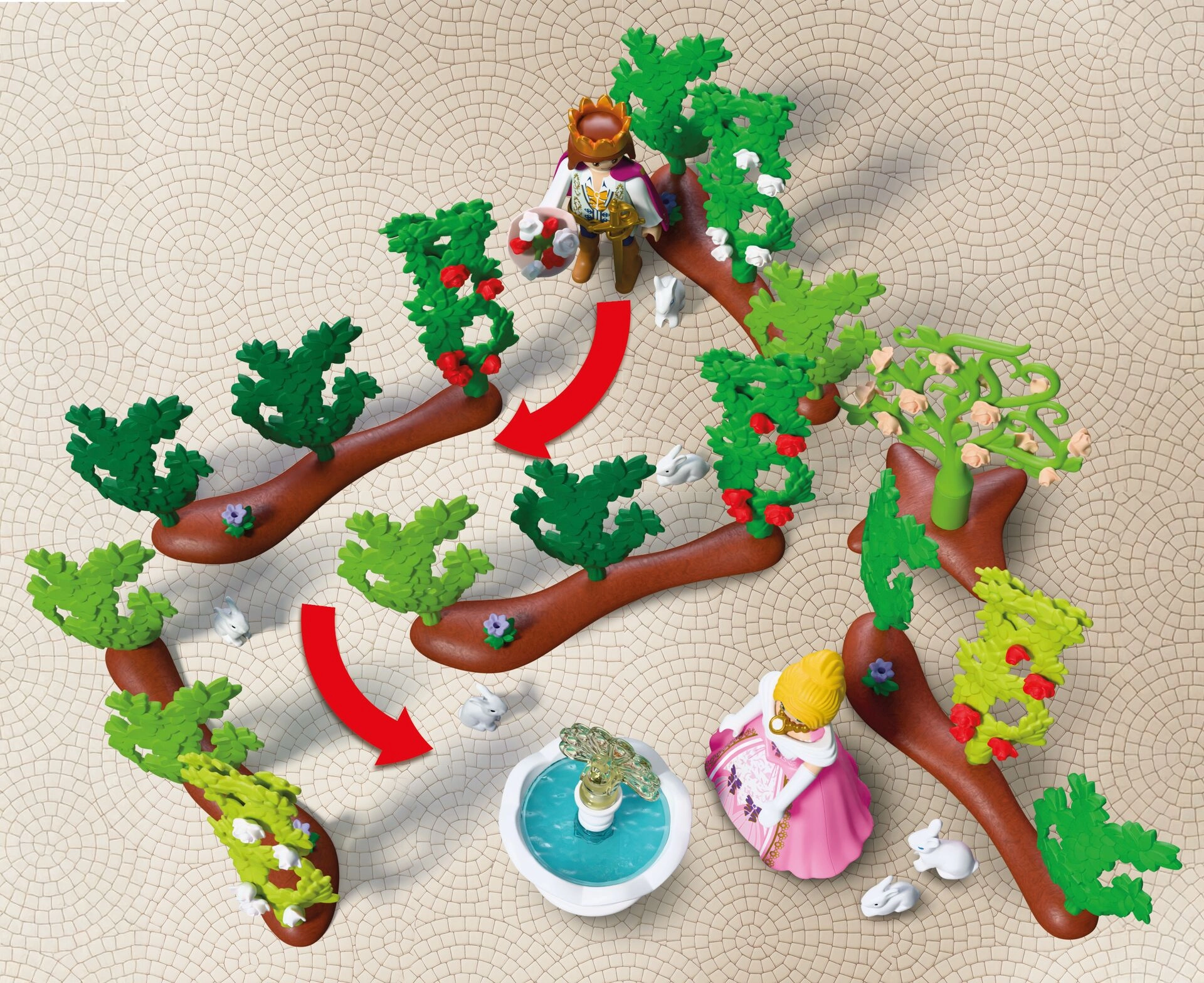 Pripremite se za romantičan susret u srcu palačinskog parka. Princ kreće vijugavim uličicama živog labirinta, koji se može neprestano preuređivati, i ide prema princezi s buketom cvijeća. Okolicu oživljavaju simpatični zečići, miris ruža i impozantna paunova fontana, koja cijeloj sceni daje bajkovitu atmosferu.
