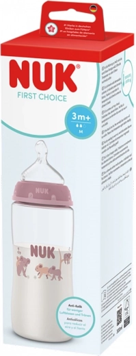 NUK First Choice Temperature Control 300 ml je pouzdana bočica za dojenčad s pametnim pokazivačem temperature koji mijenja boju ovisno o toplini napitka. Čim je sadržaj previše vruć, indikator između oznaka prijeđe iz plave u bijelu. Zahvaljujući tome možete hraniti bebu sigurnije i s većim mirom.