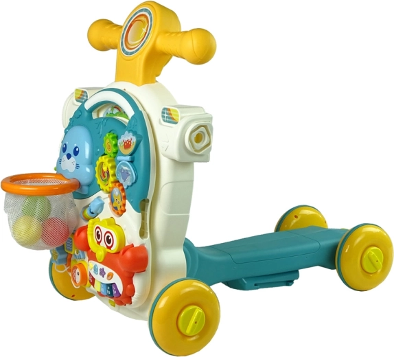 - 4 načina korištenja: hodalica, edukativni stolić (samostalna ploča), guralica, romobil