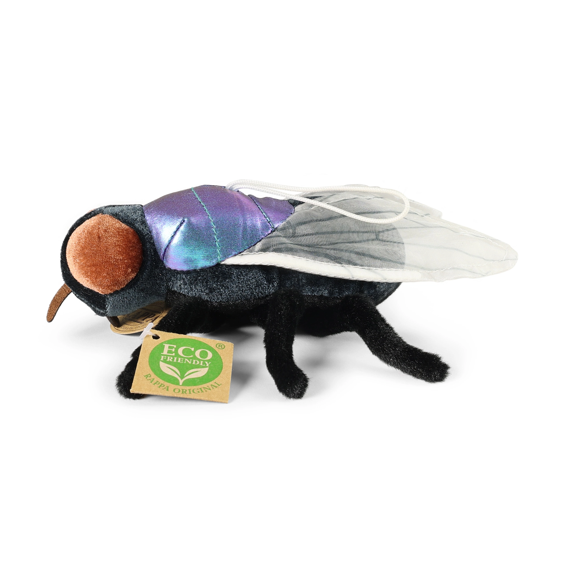 Preslatka plišana muha duljine 17 cm iz ekskluzivne kolekcije RAPPA izrađena je od mekanog materijala s ekološkim punilom od recikliranih PET boca. Zahvaljujući ručnoj izradi djeluje realistično, sigurna je za djecu od rođenja i razveselit će kao mazni prijatelj i edukativna igračka.