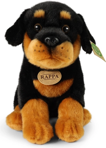 Ovaj sjedeći plišani pas pasmine rotvajler oduševljava vjernim detaljima, mekom krznom i pomnom ručnom izradom, zahvaljujući kojoj djeluje kao živ. Idealan je kao mazni prijatelj u krevetiću, dječjoj sobi ili kao simpatična dekoracija.