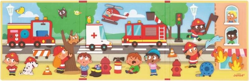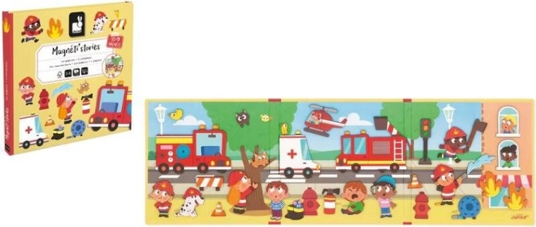 Otkrijte zabavnu magnetnu knjigu s temom vatrogasaca brenda JANOD, koja djeci omogućuje stvaranje vlastitih priča pomoću 30 magnetića. Potiče maštu, kreativnost i pripovijedanje, laka je, tanka i jednostavna za prenošenje, a zahvaljujući magnetima pojedini dijelovi čvrsto stoje na pozadini – idealno za dom i putovanja.