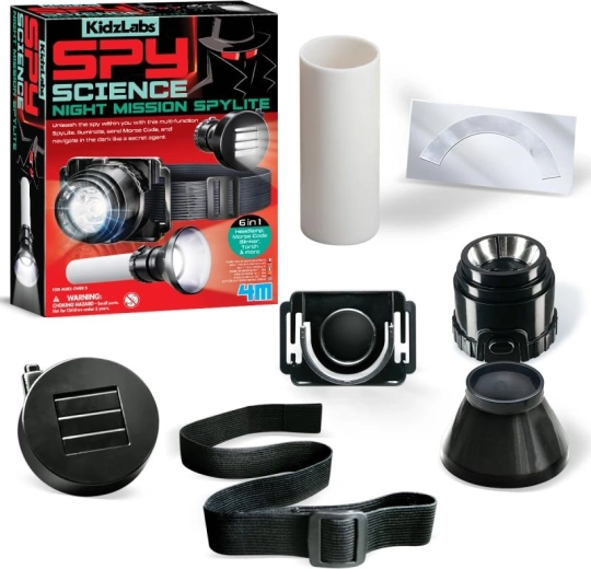Otkrijte uzbuđenje špijunskih misija s kompletom 4M KidzLabs Spy noćna misija. Kompaktna multifunkcionalna SpyLite provest će djecu kroz mrak, omogućiti im slanje tajnih signala te razvijati maštu i suradničke vještine.