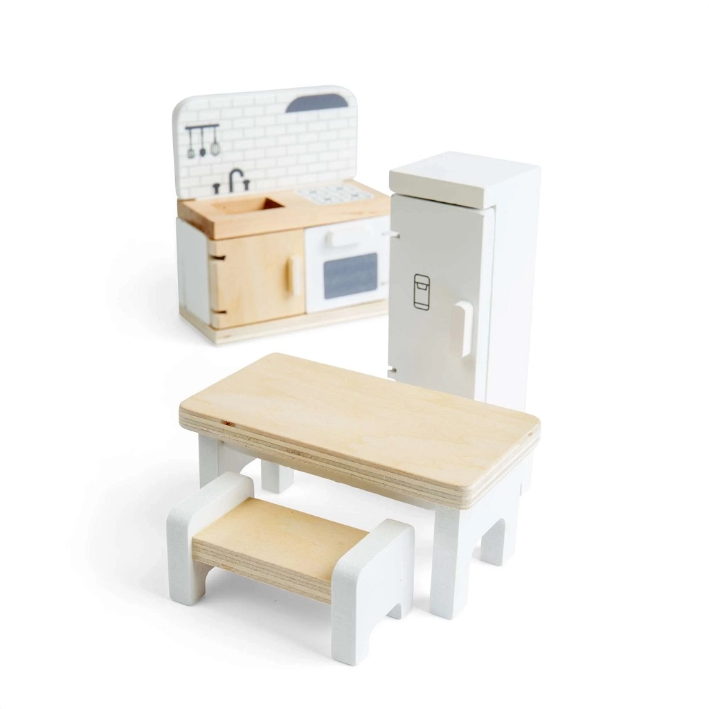 Ovaj stilski kuhinjski set za kućicu za lutke donosi djeci autentičan prostor za kuhanje, posluživanje i zajedničko blagovanje. Zahvaljujući funkcionalnim detaljima poput vrata koja se otvaraju i tiska „pločica“, djeca će uživati u brojnim scenarijima te razvijati maštu i pripovijedanje.
