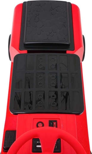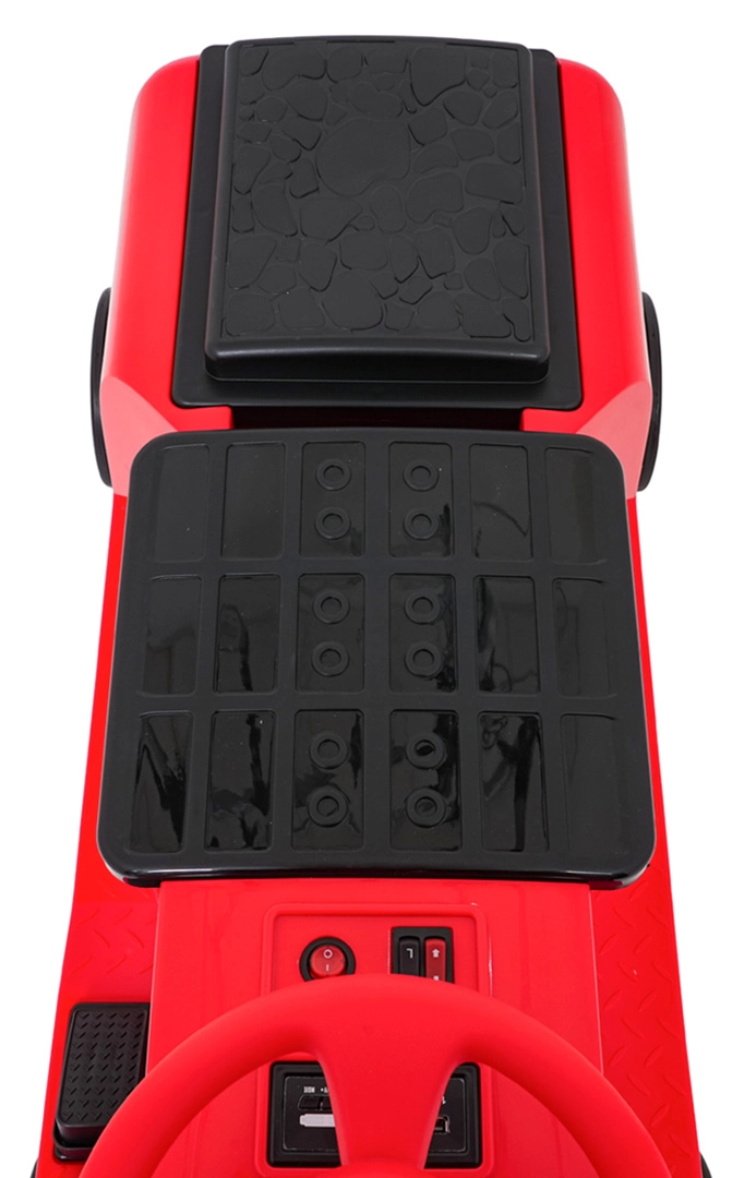 Zabavna crvena lokomotiva na električni pogon za djecu nudi dva motora 2×35 W, snažan akumulator 12 V/7 Ah i gumene kotače za glatku i tihu vožnju. Zahvaljujući glatkom pokretanju, dvjema brzinama naprijed i prednjim LED svjetlima mali će strojovođe uživati u sigurnoj i atraktivnoj vožnji. Integrirani audio panel s Bluetoothom, MP3, USB i AUX reprodukcijom pušta omiljene melodije, a tu je i gumb za zvuk i sirenu. Maksimalno opterećenje do 60 kg i dvostruko sjedalo osiguravaju puno zabave i za braću i sestre.