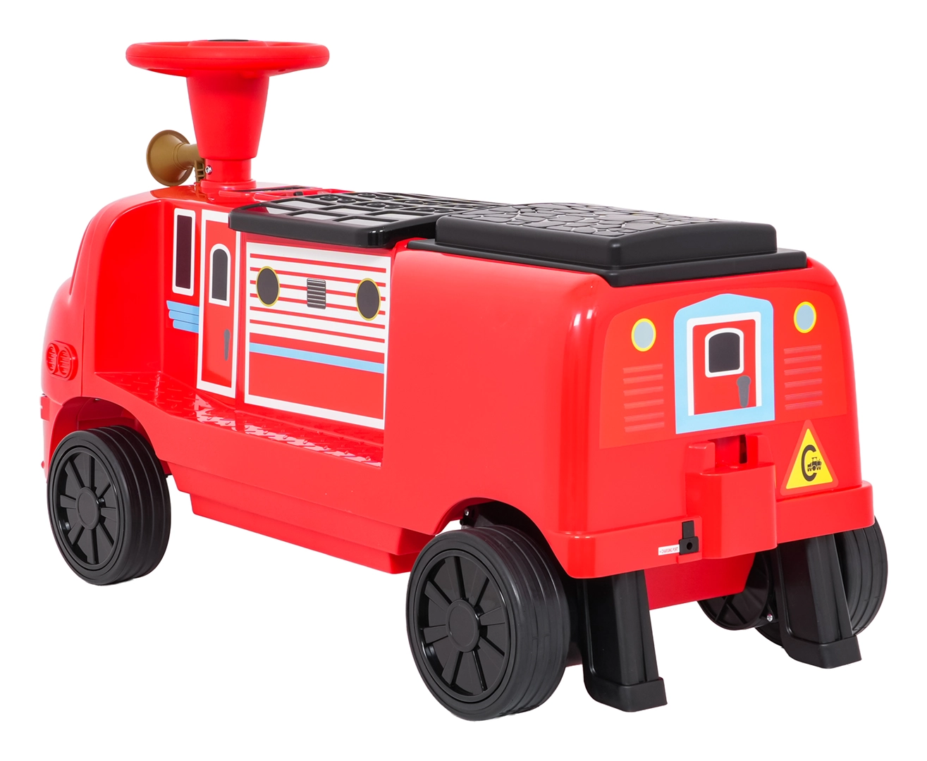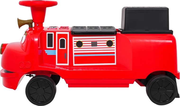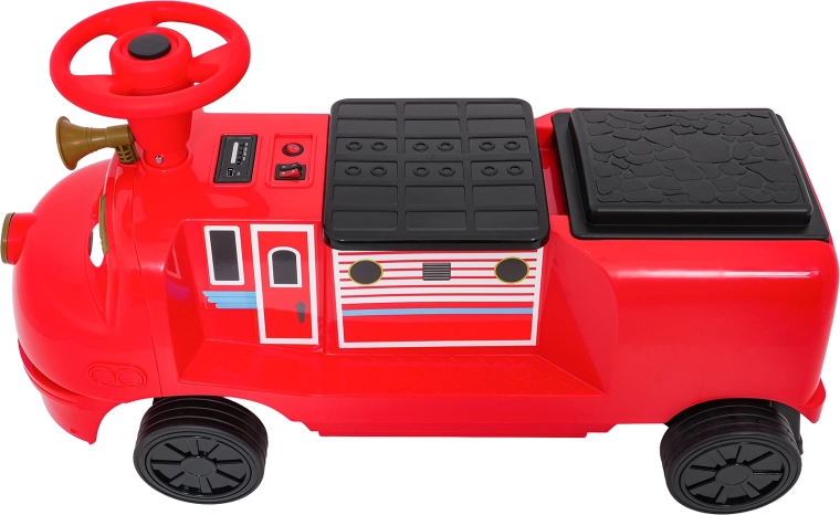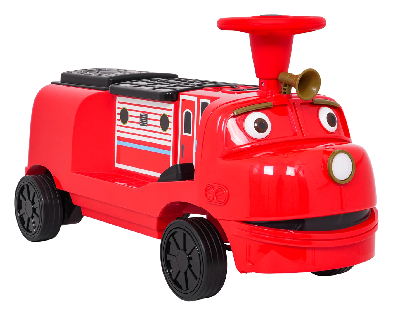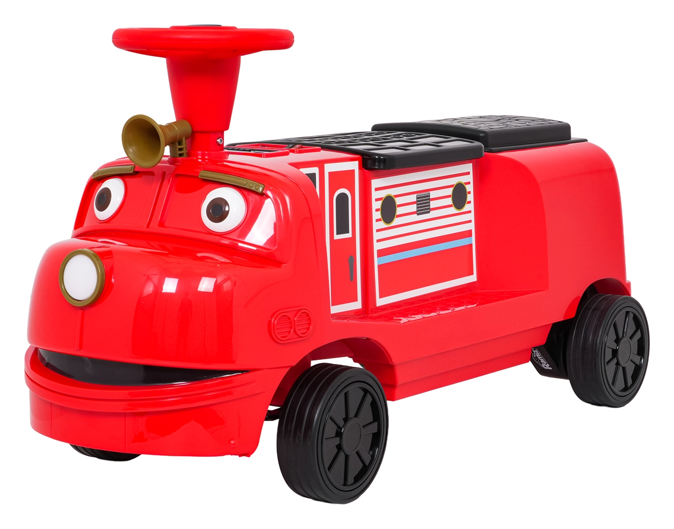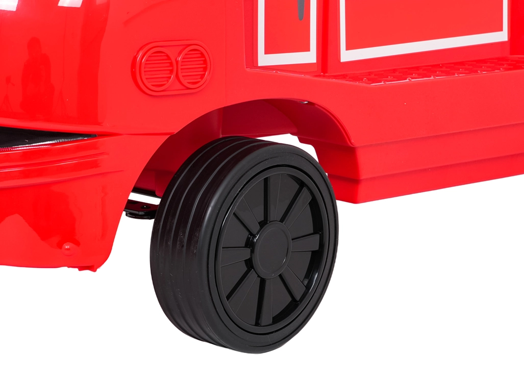 Ova stilska dječja lokomotiva inspirirana vatrogasnim vlakićem spaja stabilnost guralice s prednostima električnog pogona. Dva motora 2×35 W i baterija 12 V/7 Ah pružaju dovoljno snage za vožnju po pločniku i u domu. Gumeni kotači osiguravaju dobro prianjanje i tihi rad, a glatko pokretanje štiti dijete od trzaja pri kretanju.