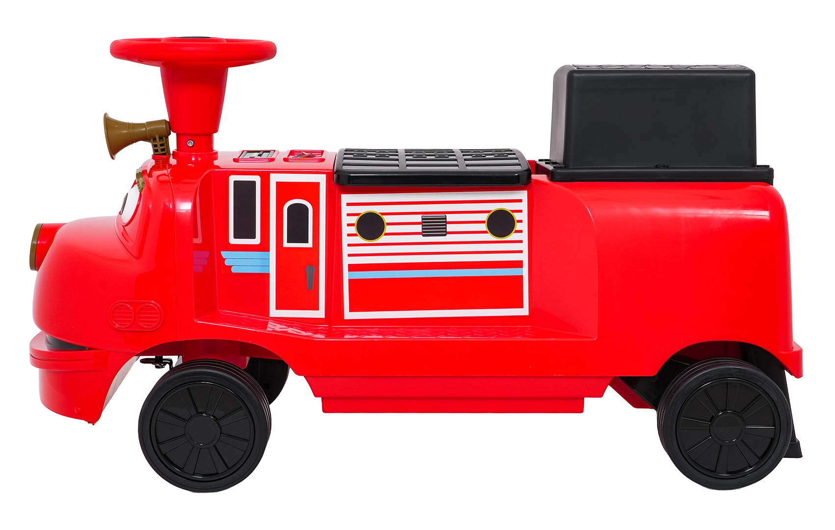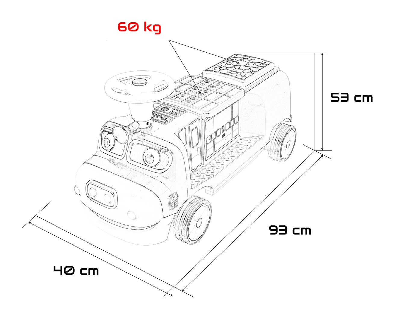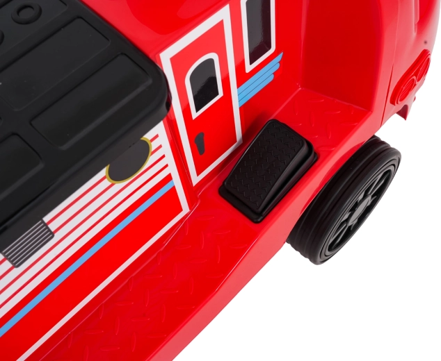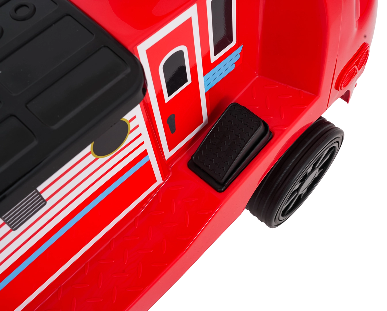 Ova stilska dječja lokomotiva inspirirana vatrogasnim vlakićem spaja stabilnost guralice s prednostima električnog pogona. Dva motora 2×35 W i baterija 12 V/7 Ah pružaju dovoljno snage za vožnju po pločniku i u domu. Gumeni kotači osiguravaju dobro prianjanje i tihi rad, a glatko pokretanje štiti dijete od trzaja pri kretanju.