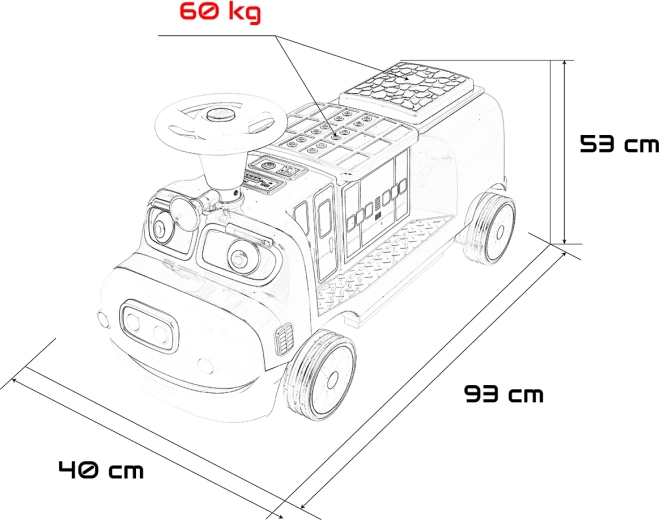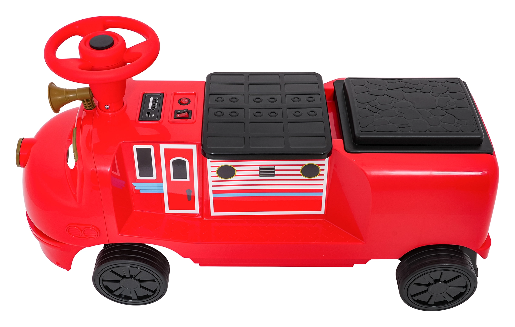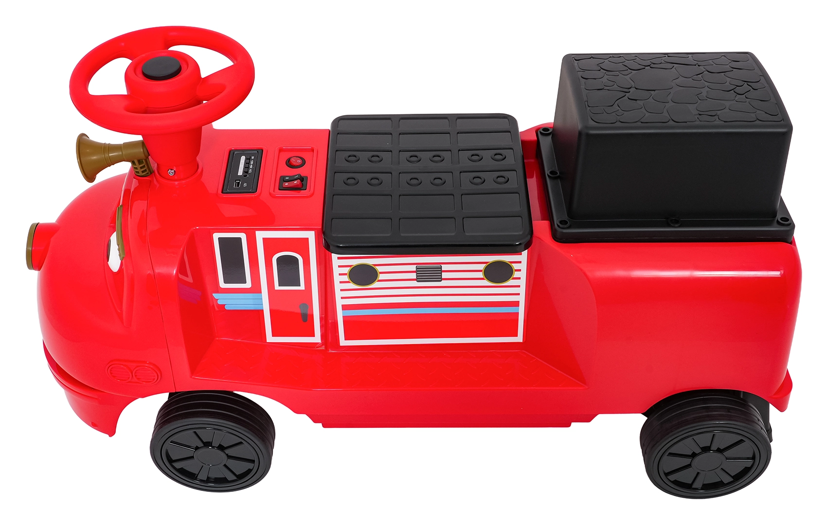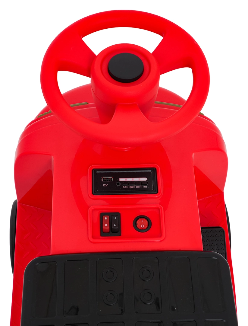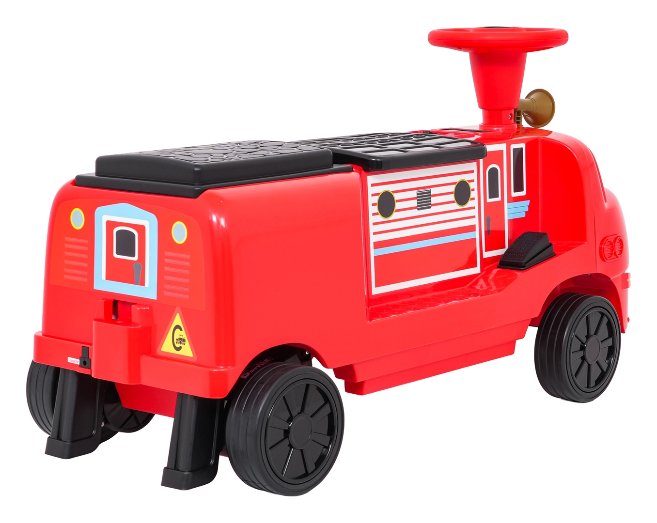 Ova stilska dječja lokomotiva inspirirana vatrogasnim vlakićem spaja stabilnost guralice s prednostima električnog pogona. Dva motora 2×35 W i baterija 12 V/7 Ah pružaju dovoljno snage za vožnju po pločniku i u domu. Gumeni kotači osiguravaju dobro prianjanje i tihi rad, a glatko pokretanje štiti dijete od trzaja pri kretanju.