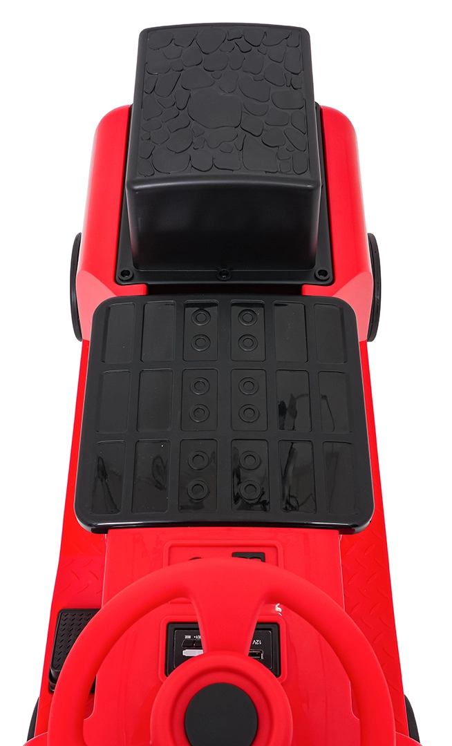 Za zabavu se brine multimedijski panel: Bluetooth za bežičnu reprodukciju, ulazi USB/AUX/MP3 i unaprijed snimljene melodije. Prednja LED svjetla daju realističan izgled i povećavaju vidljivost. Praktično dvostruko sjedalo (23×25 cm ×2) omogućuje vožnju prijatelja ili brata/sestre, a robusna konstrukcija podnosi do 60 kg.