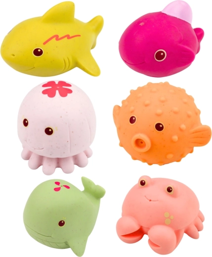 Ove preslatke igračke za kupanje pretvaraju svako kupanje u zabavnu avanturu. Set sadrži 6 različitih oceanskih prijatelja u nježnim bojama, izrađenih od kvalitetne meke gume za sigurno igranje. Djeca ih mogu stiskati, puštati da plutaju, potapati i tako istraživati morski svijet na razigran način.