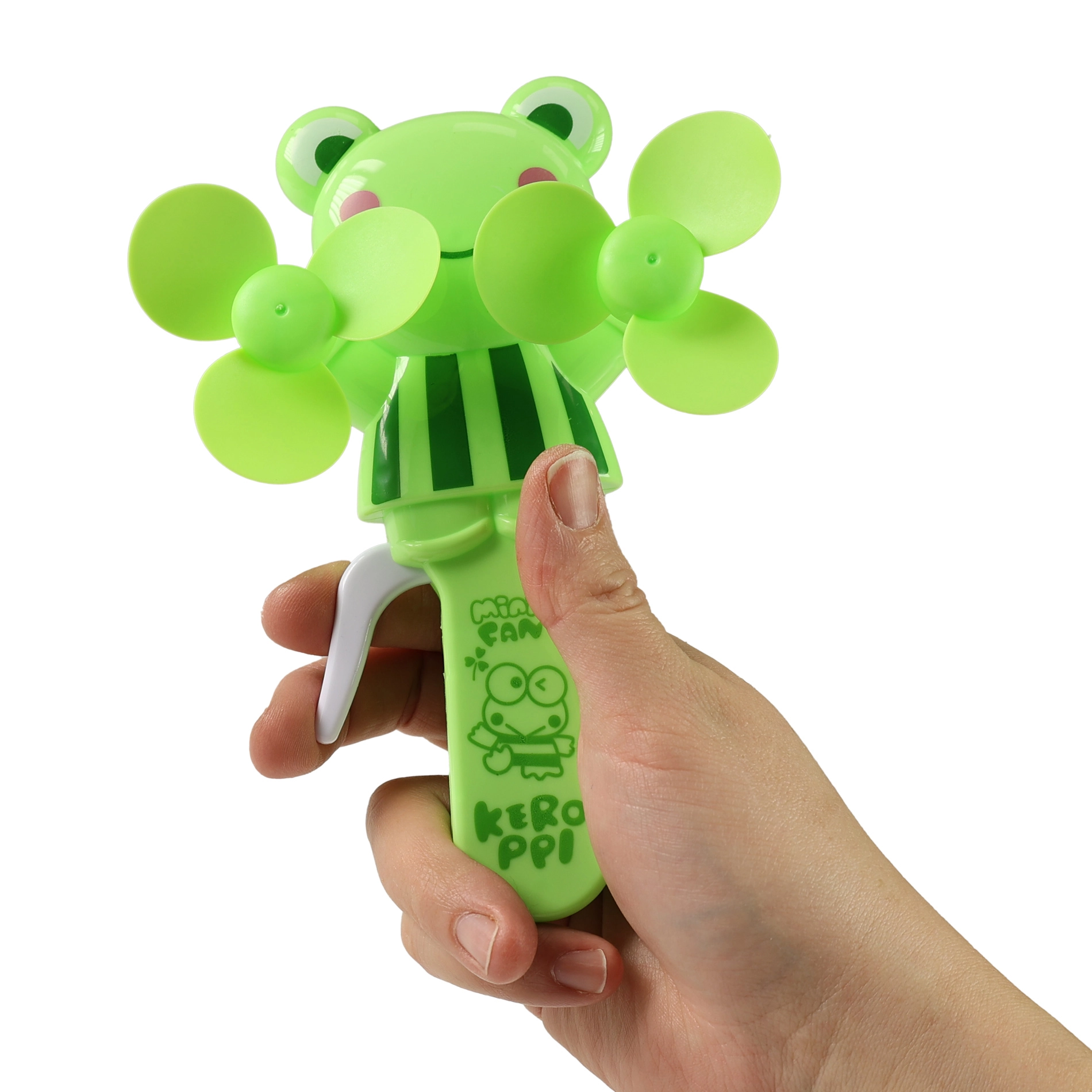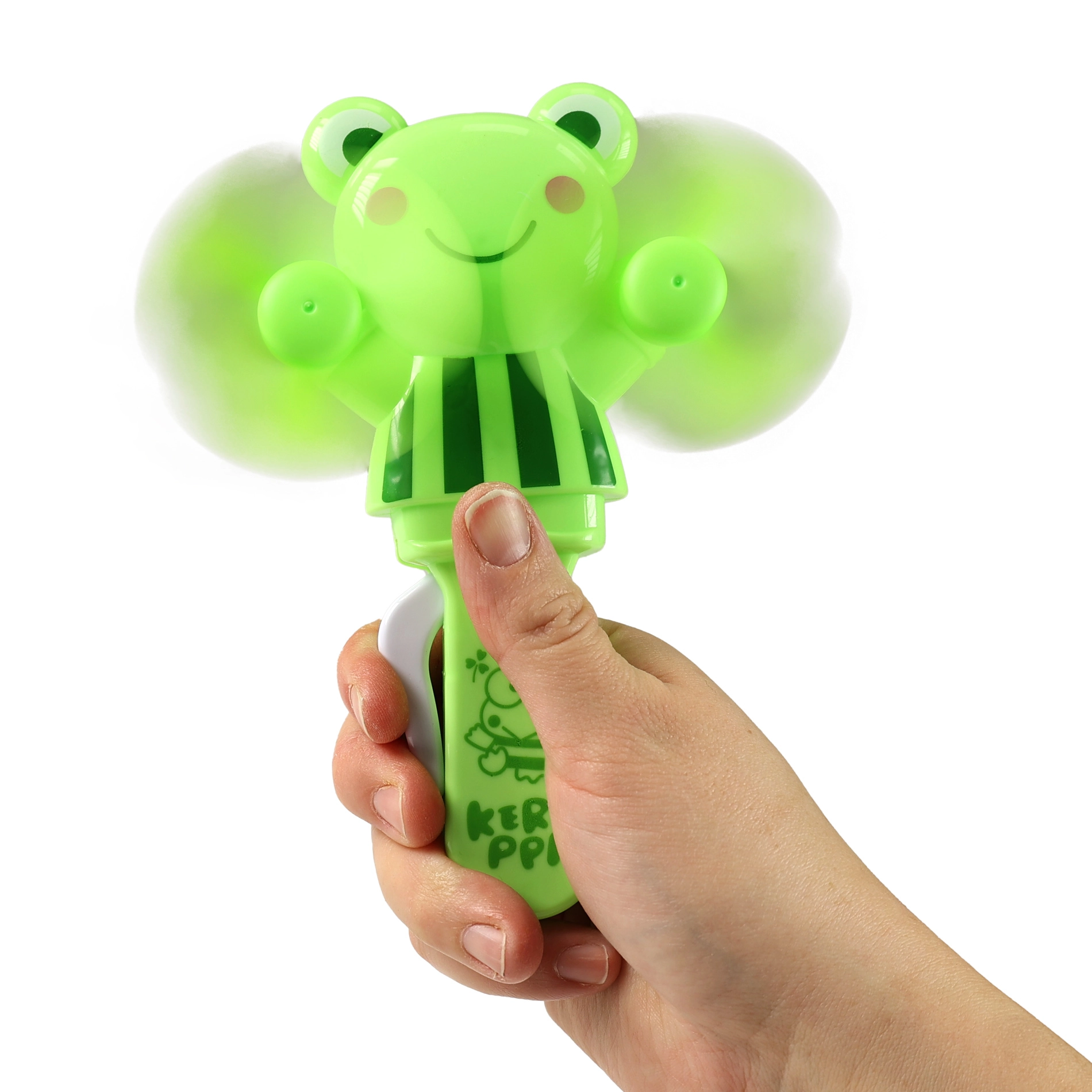 Uživajte u ugodnom povjetarcu s ručnim ventilatorom KEROPPI u razigranom žabljem stilu. Ventilator se upravlja jednostavnim stiskanjem poluge koja mehanički zavrti mekane elise – bez potrebe za baterijama. Zahvaljujući kompaktnim dimenzijama stane u ruksak i dječju ruku te je savršen za izlete, školu, park ili godišnji odmor.