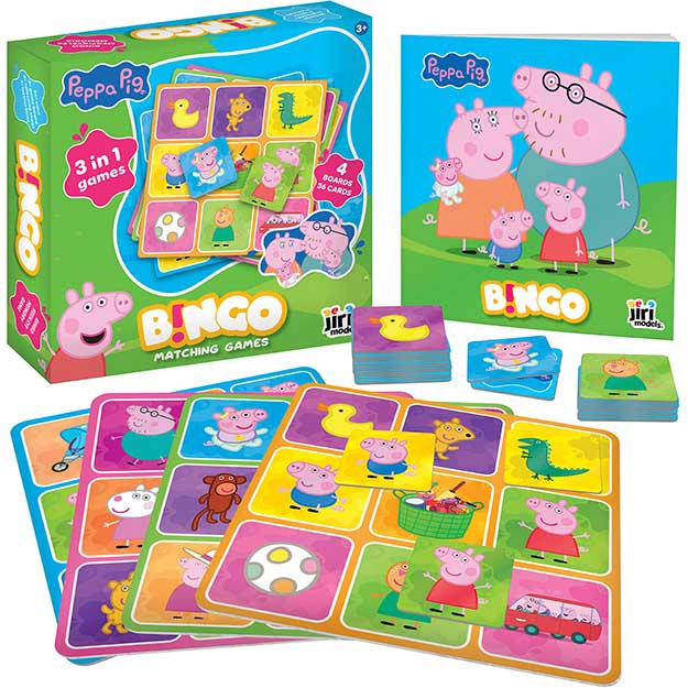 Uživajte u obiteljskoj zabavi s omiljenim likovima iz PRASE PEPPA. Ova dječja verzija binga osmišljena je tako da bude lako razumljiva, brza i puna radosti otkrivanja. Zahvaljujući trima načinima igre djeci neće biti dosadno te mogu vježbati koncentraciju, uočavanje detalja i strategiju.
