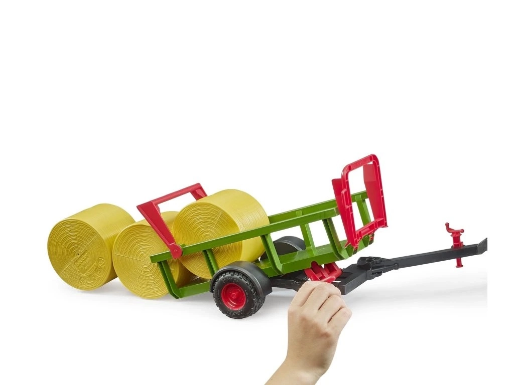 Prijevoznik bala BRUDER detaljno je izrađen model u mjerilu 1:16 koji djeci omogućuje oponašati stvarne poljoprivredne operacije. Zahvaljujući bočnom pomaku vučne šipke bale se lako usmjeravaju na sabirni mehanizam i sigurno smještaju na tovarnu površinu. Pri istovaru dovoljno je otvoriti zasune i preklopiti tovarnu površinu – bale su u trenu ponovno na tlu.