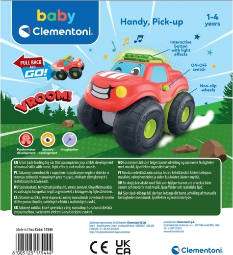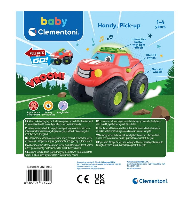 Ovaj simpatični pick-up s osmijehom na prednjoj strani razveselit će svakog malog vozača. Zahvaljujući mehaničkom pogonu pull-back dovoljno je autić navući unatrag i pustiti – krenut će naprijed i potaknuti radost kretanja i znatiželju. Svjetlosna traka i realistični zvukovi daju igri s autićima pravu atmosferu.