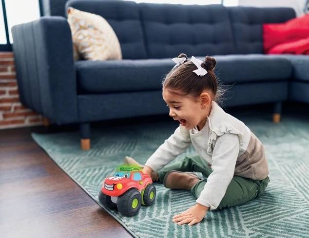 Velika kola, zaobljeni oblici i čvrsta izrada. Idealno za dječje ručice i svakodnevnu igru kod kuće i na tepihu.
