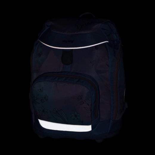 Čvrsto dno s plastičnim nožicama sprječava prevrtanje i omogućuje ruksaku da stoji samostalno. Reflektirajući elementi povećavaju vidljivost i sigurnost djeteta.