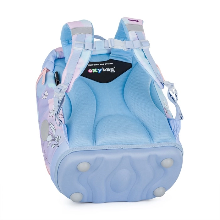 Ruksak za 1.–3. razred dizajniran je s naglaskom na pravilno držanje tijela – ima anatomski oblikovan leđni panel (oko 33 cm), podstavljene i podesive naramenice te prsni remen. Stabilnost osigurava čvrsto dno s plastičnim nožicama koje sprječava prevrtanje. Praktično rješenje nudi unutarnji razdjelnik, prednji džep za užinu i bočne džepove za bocu. Glavni pretinac zatvara se zateznom uzicom i magnetskim zatvaranjem za brzo i sigurno korištenje. Vidljivost djeteta povećavaju reflektirajući elementi.