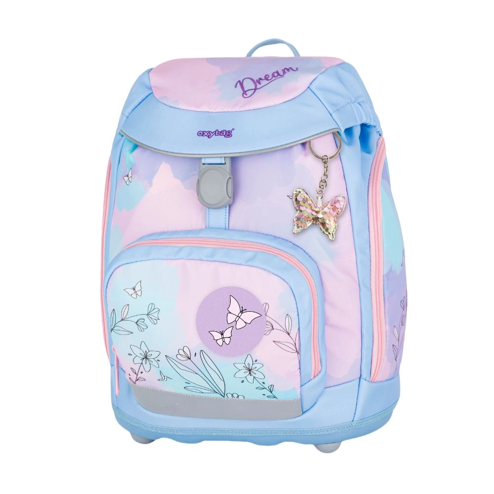 Školski set 4 kom OXYBAG Sherpy Kolibrić donosi lagan i promišljen ruksak s nježnim pastelnim dizajnom s motivima kolibrića i leptira, dopunjen usklađenom pernicom, vrećom i setom izmjenjivih bedževa na čičak. Djeca tako mogu prilagoditi izgled prema raspoloženju, a ujedno imati sve školske potrepštine pregledno organizirane.