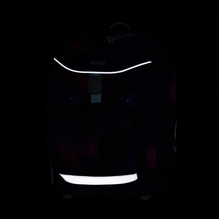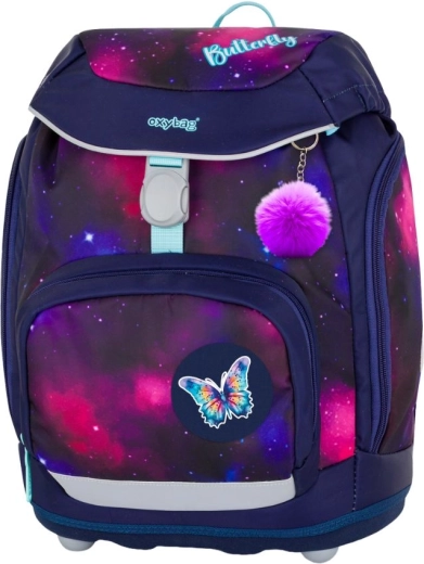 Školski set OXY Sherpy Leptir idealan je odabir za mlađe školarce zahvaljujući naglasku na zdravo nošenje, sigurnost i promišljenu organizaciju. Ruksak ima ergonomski oblikovan leđni panel (duljina 33 cm), podstavljene i podesive naramenice te prsni remen za pravilno držanje tijela. Čvrsto dno s plastičnim nožicama osigurava stabilnost kada je ruksak odložen.