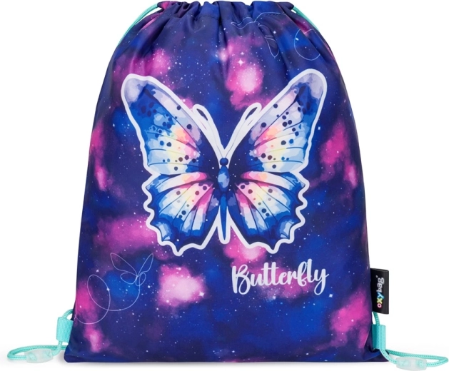 Kompletan školski set za 1.–3. razred s motivom leptira uključuje ergonomski ruksak OXY Sherpy, pernicu, vrećicu za tjelesni i izmjenjive bedževe. Nudi anatomski oblikovana leđa, podstavljene naramenice, prsni remen, reflektirajuće elemente i čvrsto dno s nožicama za stabilnost. Praktična organizacija s unutarnjim razdjelnikom, bočnim džepovima za bocu i prednjim džepom za užinu olakšava svakodnevno korištenje.