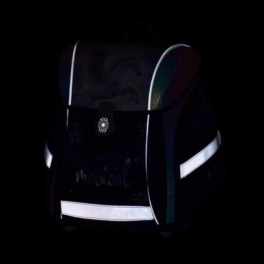 Školska aktovka serije Premium Light u dizajnu Pegas spaja malu težinu s visokim komforom i funkcionalnom opremom. Zahvaljujući olakšanoj konstrukciji sama torba teži svega 970 g, a ipak nudi volumen 26 l i pametni unutarnji razdjelnik za udžbenike, bilježnice i užinu. Magnetsko zatvaranje omogućuje djeci jednostavno i brzo otvaranje i zatvaranje.