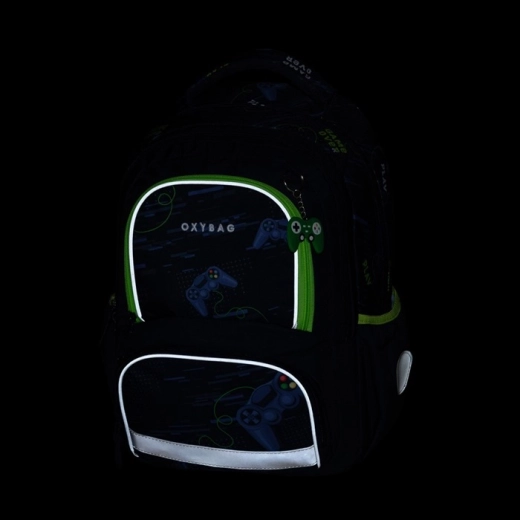 Školski set OXY NEXT Gamer dizajniran je za udobnost i sigurnost školaraca od 2. do 4. razreda. Ruksak nudi ergonomski oblikovana leđa, podstavljene i podesive naramenice s prsnim remenom koji ravnomjerno raspoređuju teret. Zahvaljujući velikom broju džepova – od glavnih pretinaca do manjih organizatora – djeca uvijek imaju red u svojim stvarima.