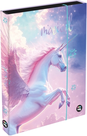 Kutija za bilježnice A4 Jumbo Pegaz pouzdan je pomagač za svakodnevno pohađanje škole. Zahvaljujući čvrstoj laminiranoj obradi štiti sadržaj od savijanja i oštećenja, dok elastična gumica sve drži sigurno zatvorenim.