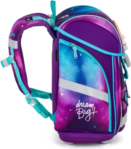 Lagana i ergonomična školska torba Premium Light Dream Big kombinira samo 970 g težine s prostranim volumenom od 26 l i promišljenom organizacijom. Ima prozirnu, prozračnu podstavu leđa, mekano podstavljene široke naramenice s prsnom trakom i zateznim trakama, reflektirajuće elemente za sigurnost i jednostavno magnetsko zatvaranje. Prikladna za mlađe školarce od visine cca 121 cm.