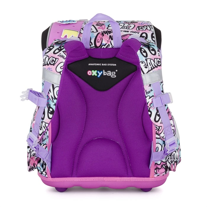 Glavni pretinac prima udžbenike, bilježnice i mape, prednji džep idealan je za užinu i sitnice. Čvrsto dno sprječava prevrtanje i ispadanje sadržaja, a sigurnosna metalna kopča s reflektirajućim umetkom lako se otvara i zatvara i dječjim prstima. Uključeni su reflektirajući elementi oko cijelog ruba za bolju vidljivost na putu do škole.