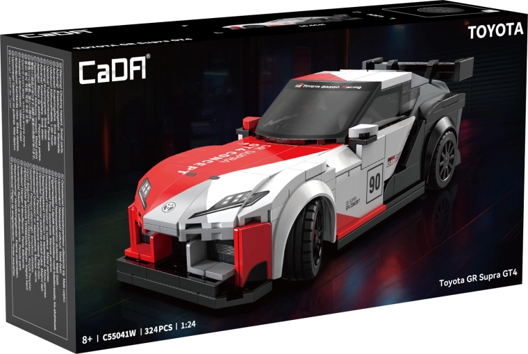 Ovaj statični model iz serije CaDA vjerno dočarava agresivnu siluetu i aerodinamične linije trkaćeg specijala TOYOTA GR Supra GT4. Set je osmišljen za zabavnu izradu, izlaganje na polici i laganu igru zahvaljujući kotačima koji se okreću. Otisci na dijelovima ističu realistične trkaće elemente, uključujući spojler i startni broj.