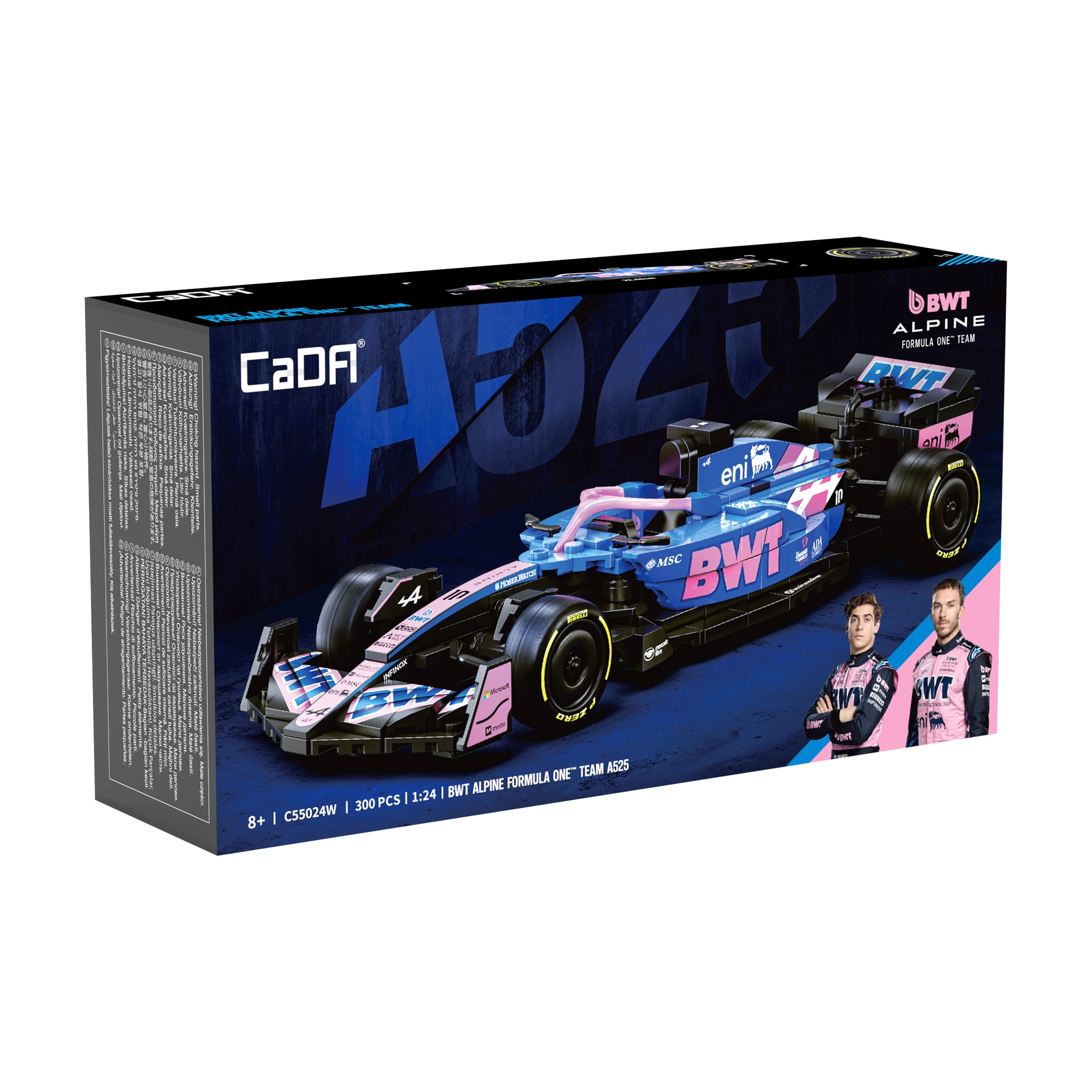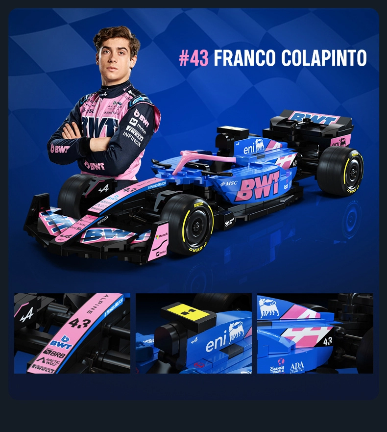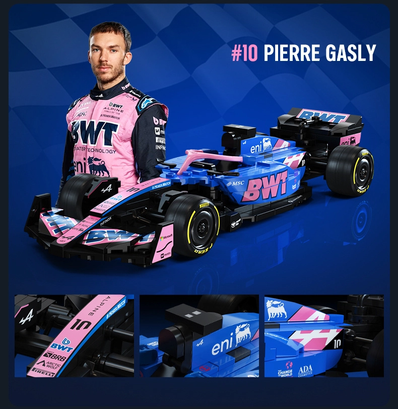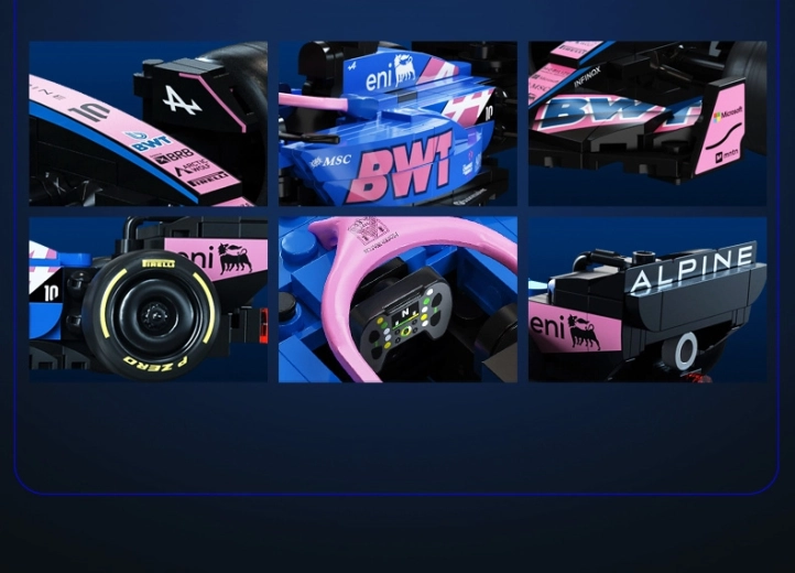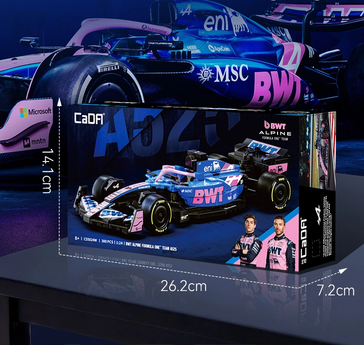 Ovaj dizajnerski set CaDA vjerno prikazuje agresivnu siluetu i upečatljive boje bolida BWT ALPINE F1 A525. Zahvaljujući bogatim detaljima, otiscima na dijelovima i promišljenoj konstrukciji, idealan je kao stylish eksponat u vitrini i kao inspiracija za kreativnu igru.