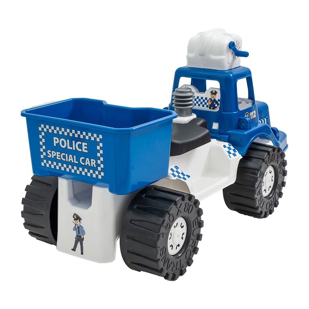 Ispod sjedala nalazi se praktična kutija za igračke ili otopinu za mjehuriće, kako bi mali policajac imao sve pri ruci i na dužim pustolovinama.