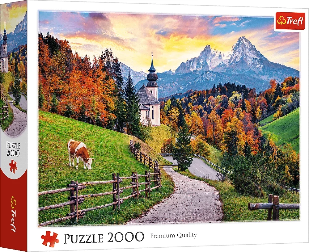 Uživajte u opuštajućem slaganju s prekrasnim motivom bavarskog krajolika. Ova kvalitetna slagalica s 2000 dijelova prikazuje jesenske Alpe sa snježnim vrhovima, malom crkvicom i zavojitom cestom. Veliki format donosi detalje bogatih boja, a nakon slaganja može poslužiti kao stylish zidna dekoracija.