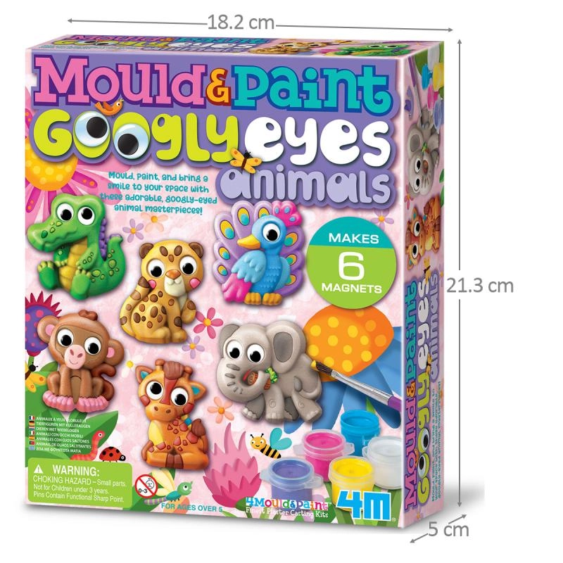 Djeca će izraditi do 6 originalnih magneta – primjerice slona, majmunčića, pauna, žirafu, leoparda ili krokodila. Pokretne oči daju svakom uratku zaigran izraz, a gotove dekoracije postat će omiljen dodatak dječjoj sobi.