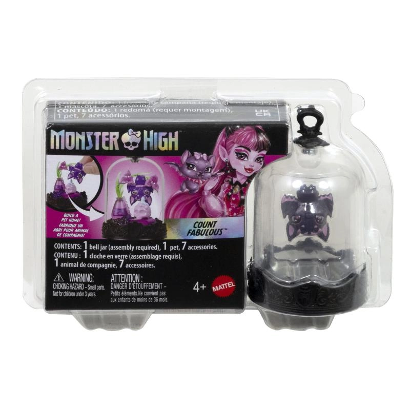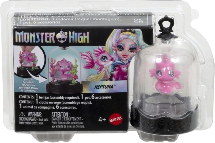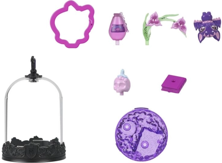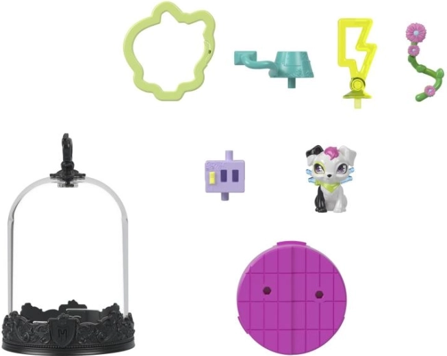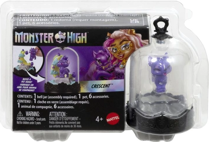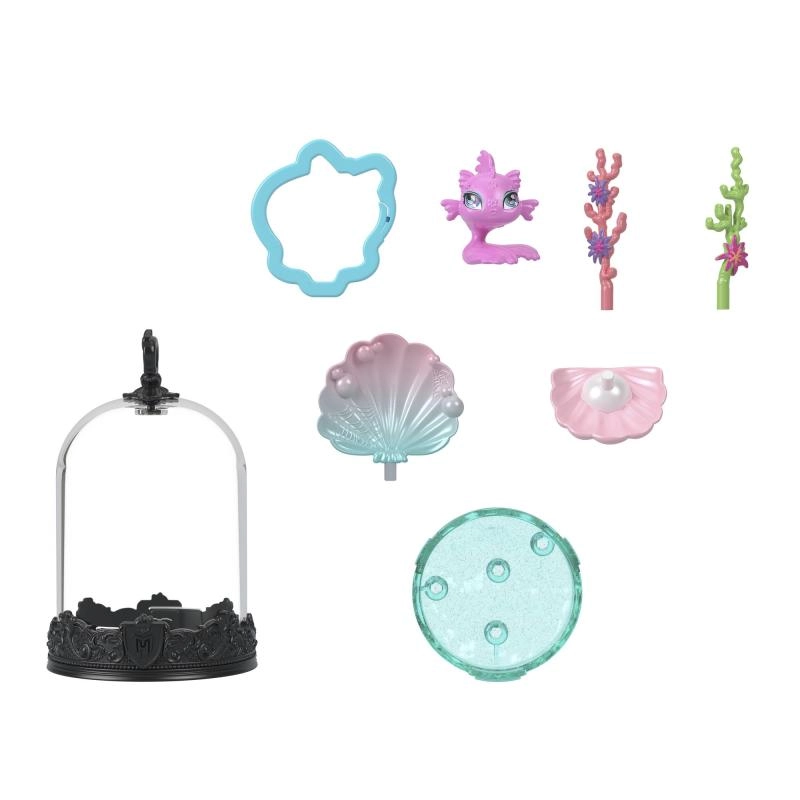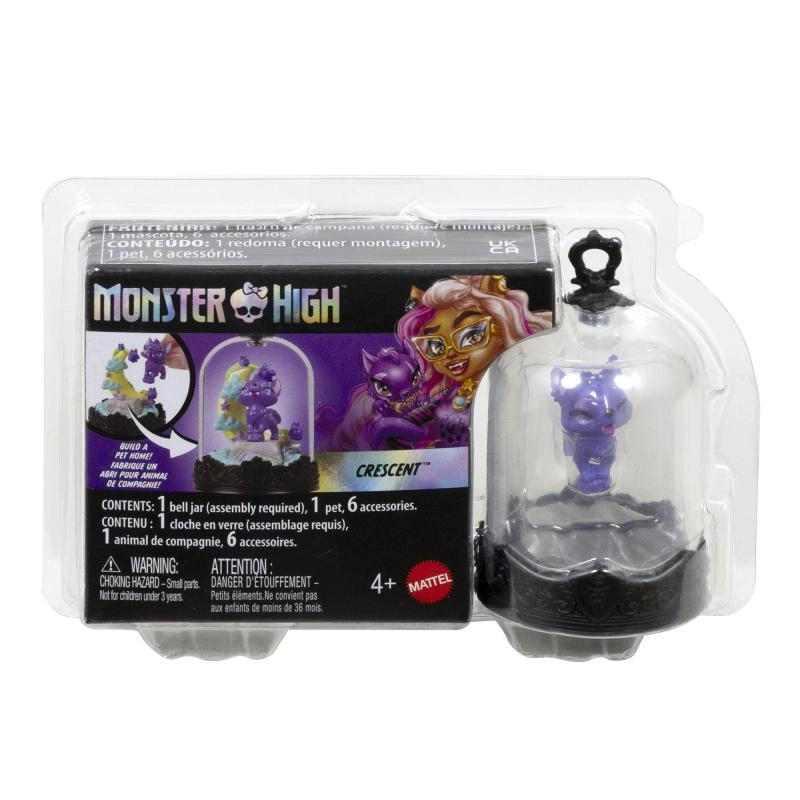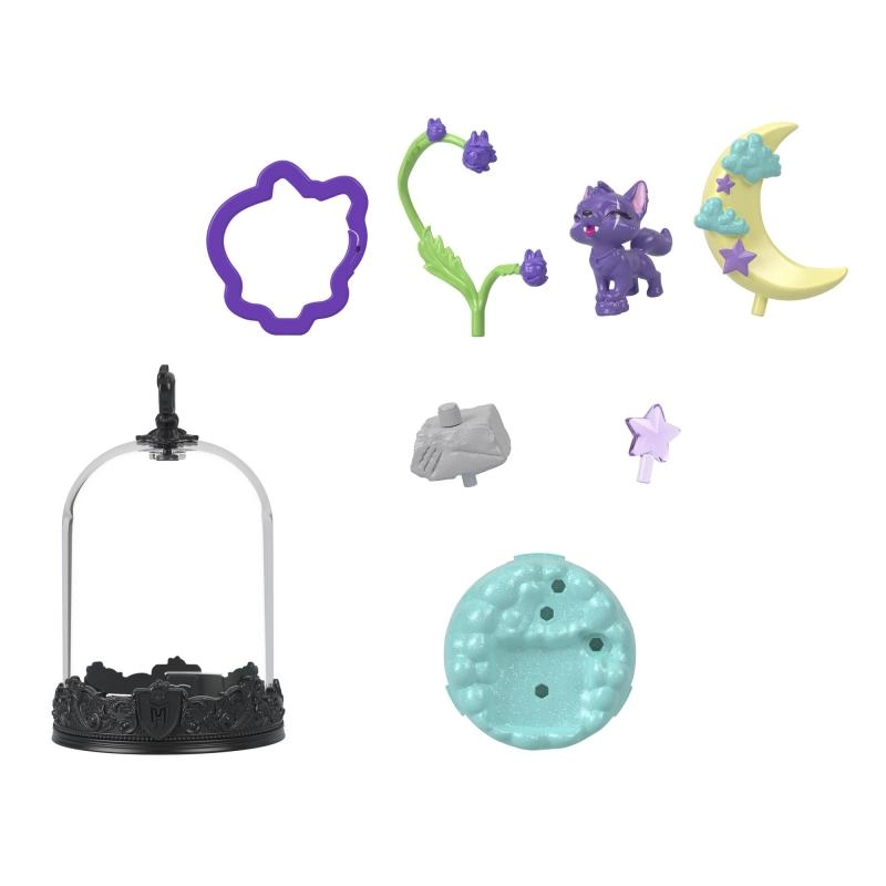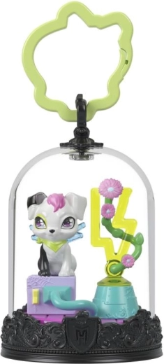 Svaki MONSTER HIGH privjesak skriva kolekcionarskog ljubimca u prozirnoj kupoli na ukrasnom postolju s MH grbom. Djeca mogu stvoriti vlastitu mini scenu uz pomoć tematskih dodataka, a zatim je zatvoriti prozirnim pokrovom – nastaje tako stilska viseća vitrina spremna za put.