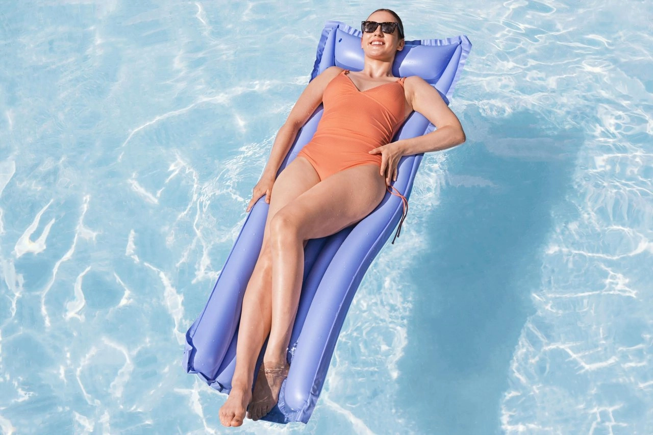 Povišeni naslon za glavu osigurava prirodnu potporu vratu i ugodnu relaksaciju pri plutanju i sunčanju.