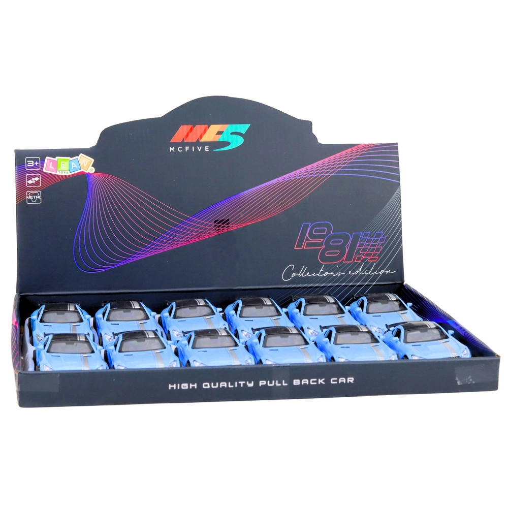 Stilizan metalni model sportskog automobila u mjerilu 1:32 oduševljava realističnom izradom i dinamičnim linijama. Plava karoserija s crnim detaljima i spojlerom daje modelu agresivan izgled. Zahvaljujući otvarajućim vratima, svjetlosnim efektima i zvukovima motora pruža još veću zabavu pri igri i atraktivnu prezentaciju u kolekciji.